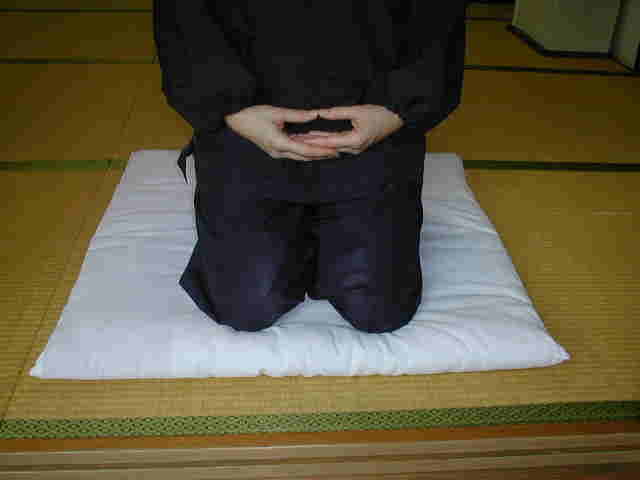 - style kneeling. Of these, Kekkafuza is the most formal. If it is not physically possible to do this you should do Hankafuza. If both styles are too difficult you may choose to do Japanese - style kneeling. Some people may sit on a chair until they become able to sit on the floor. Kekkafuza Sit with the right foot on the left thigh and left foot on the right thigh. Buddha statues sit the opposite of practicing students. Buddha is always saving people and therefore sits counter crosswise. We are practicing so please sit as explained above.