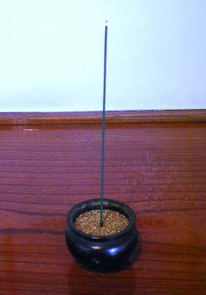 Zazen.When using incense, pick a stick that will burn for the desired time and put it in front of you. The nice smell of incense is also helpful for concentration while doing Zazen. |